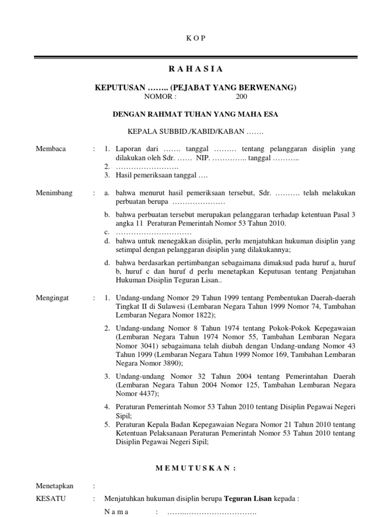 Contoh Surat Teguran Lisan Pp 53 Tahun 2010 Pdf